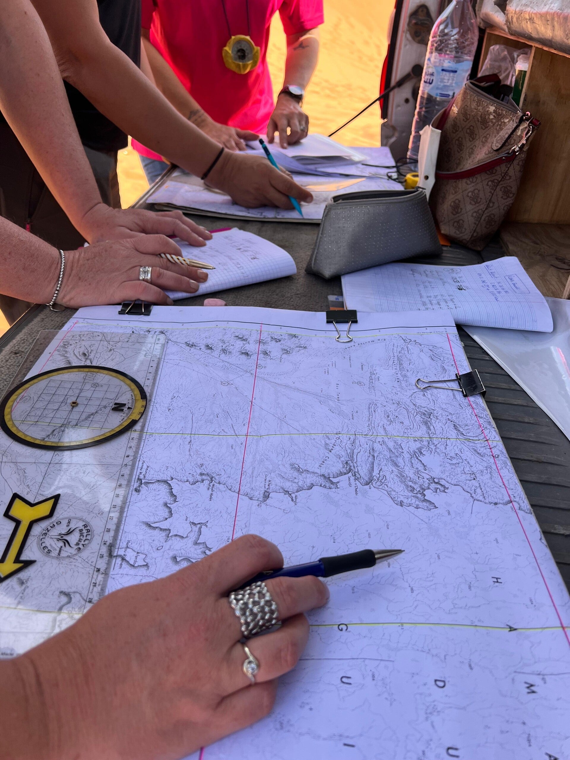 C’est un mini rallye sur quelques jours avec roulage dans différentes zones, franchissement et situation pas tjr simples à gérer mais tout est possible quand on a les techniques transmises par l’équipe. La navigation est très précise avec pose des points gps sur cartes, des exercices de triangulation sur le terrain indispensables pour se repérer !